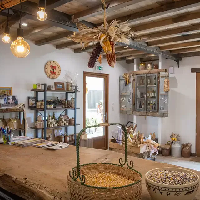 Afin de mettre en valeur le fruit de notre labeur, nous avons créé une véritable boutique au sein de la ferme Sahouret.